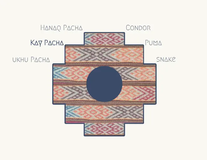 In Quechua cosmology, Kay Pacha means “this world” or “this land”, the world where humans, animals, plants, mountains, rivers, and all living beings exist together.